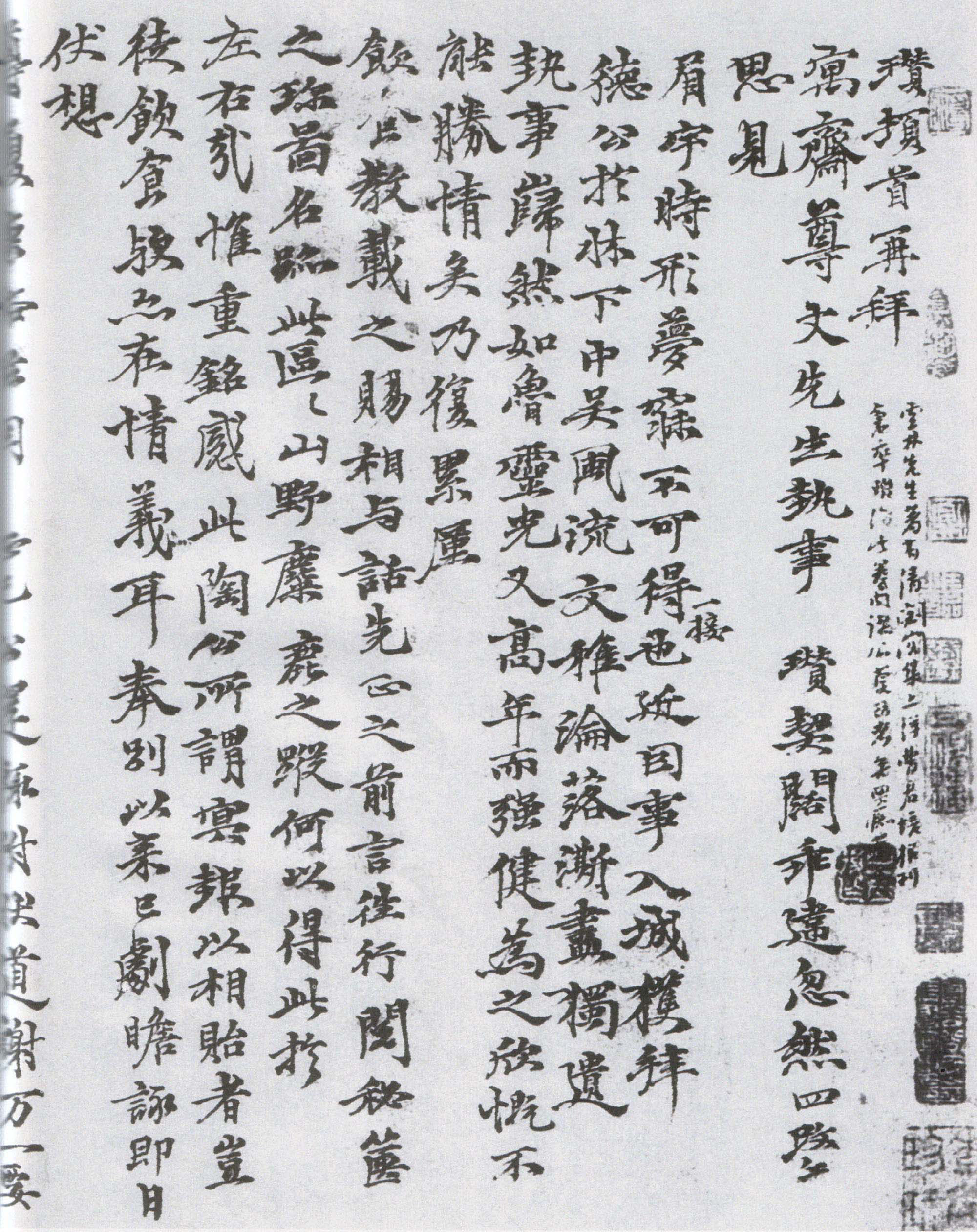 倪瓒中年书法由遒劲转向清婉,张丑所谓“本身自遒劲,旋就清婉”。梁同书评倪迂《赠袁寓斋书画卷后》云:“迂不独画入逸品,即书法亦天然古淡,神韵独绝,由其品高,故能如此。若诗家之有陶潜,不徒于翰墨遇之也。”
