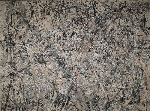 波洛克在 1947 - 50 年创立的滴画风格,一直是名人和评论界的关注点。在这些颇具革命性的作品中,波洛克把未完全撑开的画布平铺在画室地面,然后将房屋用的珐琅颜料倾倒、滴注上去。这样形成的视觉效果,用波洛克自己的话说,是“让人能看到的能量和动作”的旋风。