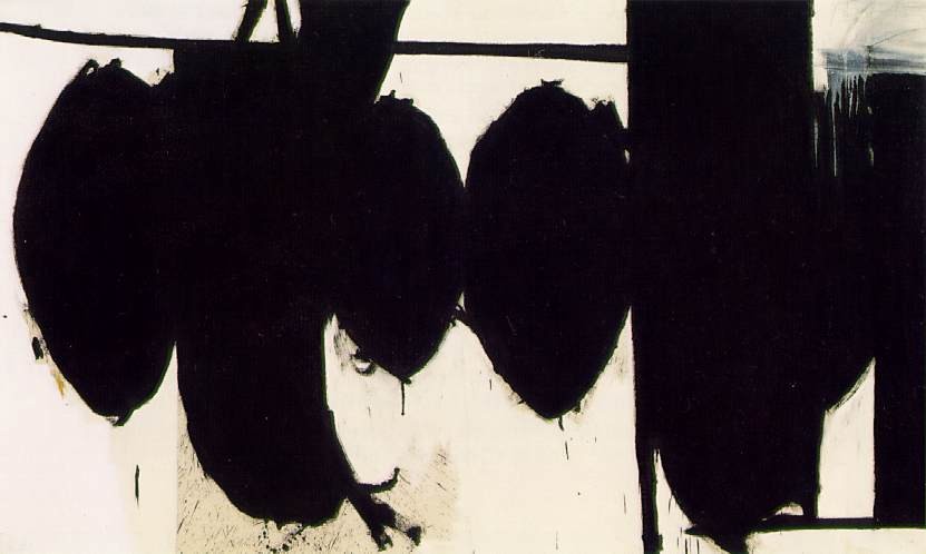 罗伯特·马瑟韦尔(Robert Motherwell)可算作抽象表现派运动的组织者,是一位多产的画家,其最为著名的作品是名为‖西班牙共和国挽歌‖的系列作品。画面主要是黑色的大笔触画在白的背景之上,形成几何化的团块和结构,具有一种纪念碑式的沉稳厚重之感。和波洛克一样,他的笔触也是随意的,所不同的是在作画过程中,马瑟韦尔的理性的力量总是可以起作用的,他试图平衡意识与非意识,在自由表达和保持一定的画面构图之间做出协调。