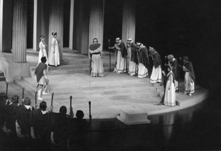 这种竞赛会鼓励了悲剧诗人和参加演出人员的创作热情,久而久之,演出从只有一个演员和一个合唱队的最初悲剧形式,发展到有第二个演员,通过对话,塑造不同的人物性格并开始有了戏剧冲突的悲剧演出形式;再往后,又增加到了第三个演员。悲剧趋于定型。