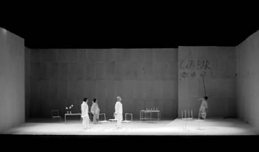 首先,在空间处理上,他形容自己的设计原理是:“在深度和高度上展开行动。”为此,他把自己的设计叫做“节奏空间”,布景往往以不同高低的平台、斜坡、台阶以及简单的墙片组成。