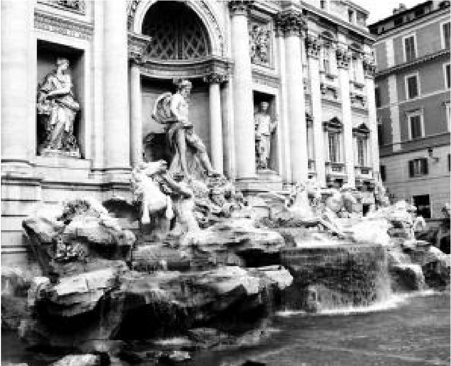 离开西班牙广场,步行到少女泉。这里有个美丽的传说,但人们来这里不是为听传说,而是为了许愿,故又称为许愿池。当地人叫它特莱维喷泉(FontanadiTrevi),是罗马最大的一个喷泉。在街中,一弯池水拥着一组雕塑,大概是海神之类。人们说,当你离开罗马前,只要在这里背对喷泉,向后抛一枚硬币到水池中,同时许愿,第一个愿望必须是“我要重回罗马”;第二个愿望则随己所欲,非常灵验。我们也去抛着玩,认认真真地许愿。老化抛的是人民币,不知灵不灵。