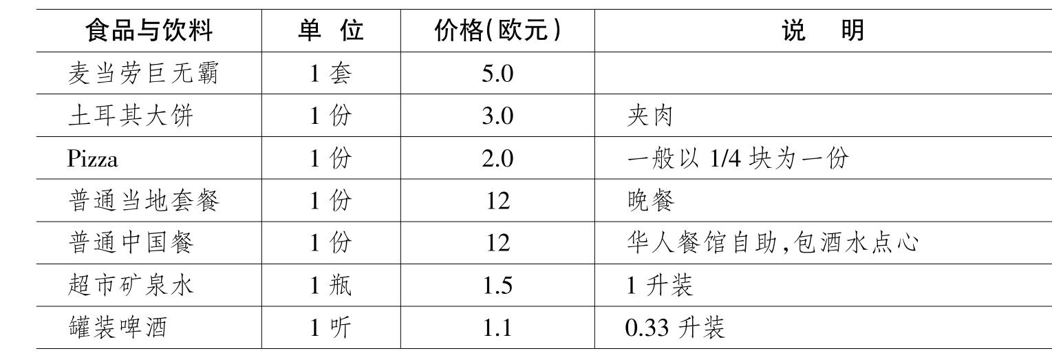 丹麦Aarhus市旅游饮食价格表