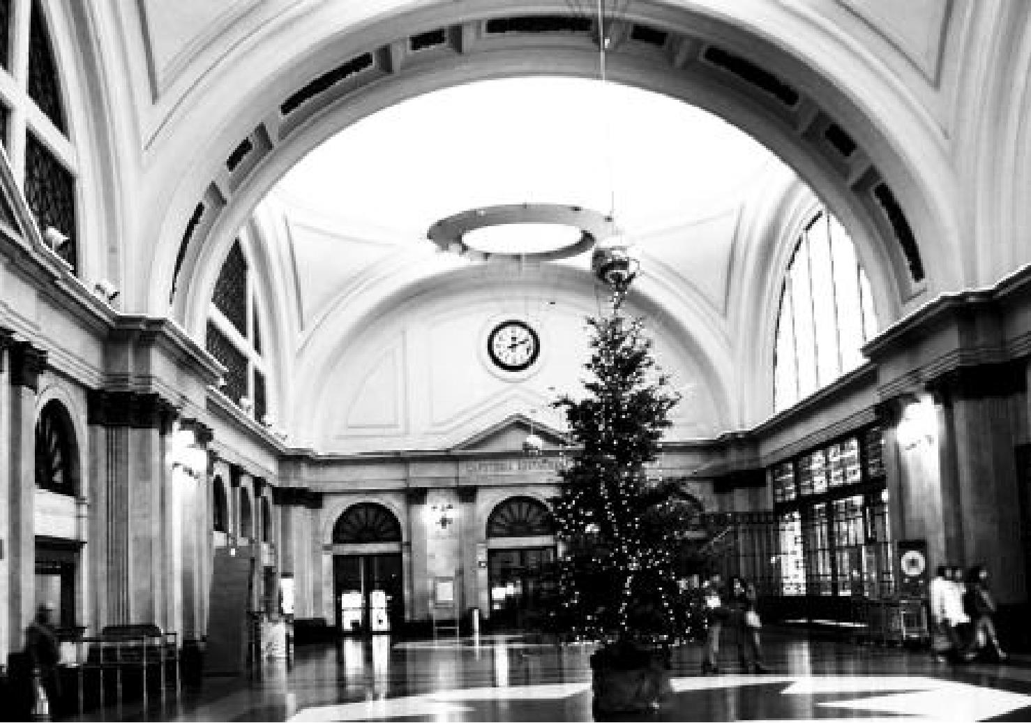 直到走到这个火车站门前,我们也不相信它是个火车站。看上去不过是街上一排房子中的一个旧写字楼,或者一个普通单位而已。外表朴素,门前冷清。进去一看,嚯!简直就是中国的超五星级大酒店。里面穹顶高大,灯火辉煌,大厅空旷无人地面光洁如镜。置身其中,仍然怀疑,这哪里是个火车站,简直就是个艺术宫殿。就是欧洲其他火车站与之相比,也无有出其右者。尽管有的车站比它气派、堂皇一点但都没有它这么高贵而不逼人,堂皇而恰到好处,安静却令人享受。要不是透过厅间隔门看到里面有四五辆火车在安静地停着(不知铁路是从哪里来的),谁能相信这是火车站呢?
