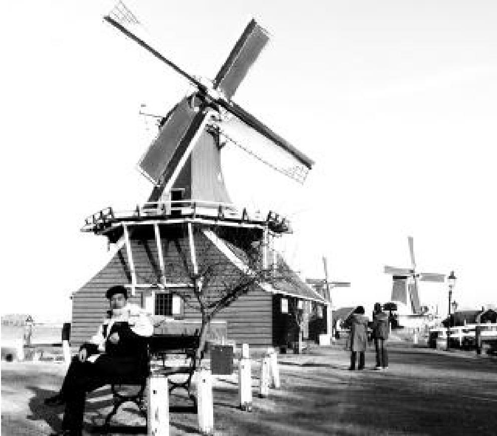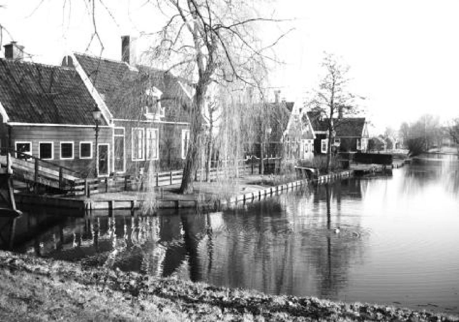 到风车村的火车半小时一趟,行程16分钟。站名叫Kong-Zaandij。车站只有一座小房子,离小镇二三百米。冬天来参观的人不多,只有两拨人走在我们前面。街道是乡间公路,较宽,两边民居多是小院,有的房子上写有1879年字样,可见古老。街上没有见本地居民。穿过小镇,过一座大桥,到了真正的农村野外。一个个村庄,一排排风车屋建在宽广的河边。在灿烂的霞光下,已有春回大地的感觉。与风、草地、小屋、风车、港湾,构成一幅特殊的荷兰风光。过桥后,我们向左走,因为一看就知道那里是经典旅游景点。这是个小小村庄,村头几座小木屋被水围绕着,有小木拱桥可过。水中几只鸭子在悠闲地戏水,很有“春江水暖鸭先知”的意境。我们正在忙于拍摄这恬静农家景色时,一阵得得的马蹄声传来,回首一看是两位女郎骑着高头大马急驰过来。她们戴头盔,穿马靴,着骑士服,飒爽英姿,矫健夺人。她们见我举着相机,很高兴地“Hello”一声,扬鞭策马而去。