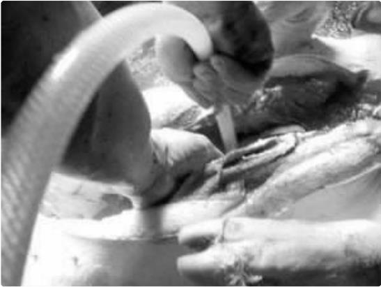 2001年4月27日,中央电视台新闻节目展示了某地生猪被“注水”的场面:灌注者用大铁钩子生生挂穿活猪的下巴,迫使猪头高高仰起,猪嘴朝上张开,人们就势插入粗管子,加压注入大量脏水废渣以增加猪的重量。在这个过程里,猪只受到极其严重的伤害,下巴被穿出一个大洞,流血不止,胃被极度撑大,不能收缩。经过这一残酷刑罚,猪只随即陷入持续难忍的撑胀和疼痛之中,直到被屠宰。也有相当数量的猪没有等到屠宰就被活活撑死了。