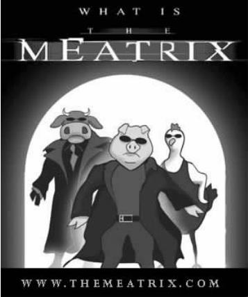 构想来自《黑客帝国》(The Matrix),以唤起社会大众人道对待饲养动物为诉求目的的《黑客帝国》动物版,将电影版《黑客帝国》中操控人类的电脑人换成操控饲养鸡、鸭、猪、牛等的肉类供应商,进而透过大家熟悉的《黑客帝国》情节,成功地阐述了人类不人道对待饲养动物的问题,并成为2003年网络上最热门的话题之一。《黑客帝国》动物版中,饰演救世主的尼欧(Leo)是一只被关在传统农庄中过着快乐生活的猪。一天,由牛扮演的莫斐斯(Moophus),现身在尼欧面前,告诉尼欧说,它所生活的空间是个幻象(人们也以为他们每天所吃的猪肉,来自被人道蓄养的猪),真实的世界是一个充满不人道的居住环境。莫斐斯给尼欧两颗药丸,一颗蓝色,一颗红色。尼欧选择吃下可以知道真相的红色的药丸,并在刹那间进入到一个虚拟真相的世界中,所有有关农场的变迁与饲养动物被不人道对待的情景,一一地出现在眼前。尼欧当下明白了真相,并决定加入莫斐斯的行列一起为被不人道饲养的动物争取权益。
