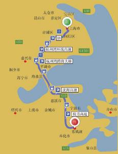 上海市—A8—杭州湾环线高速—杭州湾跨海大桥—沈海高速—东钱湖—杭甬高速
