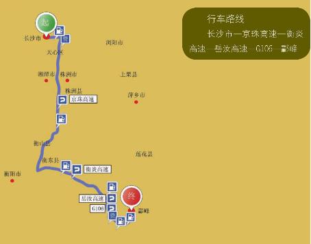 目的地:株洲下村乡田心村酃峰 距 离:约343.1公里