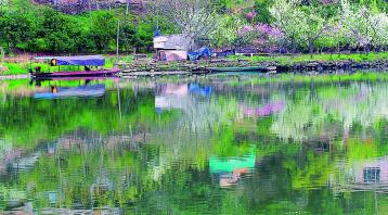 村边是赏花的路,很多自驾车经过,梨花就分布在路边两侧。午饭可以在农家乐吃。