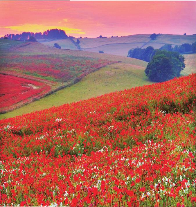春天大多是温暖宁和的,而在英吉利海峡,却因一种浸血般鲜艳的花儿,染上了浓浓的静默与悲壮——那些疯狂燃烧在英吉利海峡两岸的红罂粟。远远望去,一片片绚烂的红色,蔓延在田野、山林、村庄,像奔腾的血海一样声势迅猛,浸透了整个海峡两岸,壮丽而悲凉,让人叹为观止。