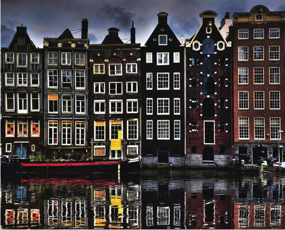 阿姆斯特丹历史悠久,建筑保存完好,街景建筑多以蓝色、绿色、黑色和红色来装扮,看起来别有一番风韵。阿姆斯特尔河缓缓从市内流过,将城市一分为二,加上两百多条的运河支路,形成了纵横交错的水路。这里水道众多,当然桥梁也不会少,大约有1 200座桥梁横跨在运河之上,而在运河两边,两千多户鳞次栉比的船屋,更成为了运河上的一道独特的风景。