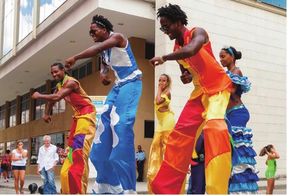 在街头经常能看见古巴人欢快地踩着高跷行走自如。