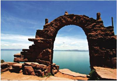 石拱门静静地矗立在湖畔,延续着古老的印加文明。