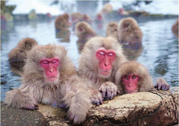雪猴们将身体浸在温泉中,享受着大自然的恩赐。