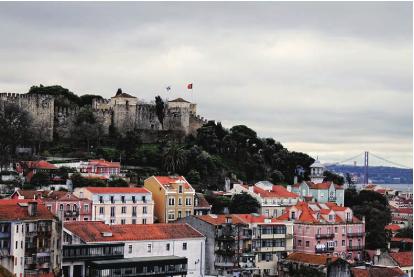 里斯本的房屋临水而建,现代的居民房都分布在山脚,很好地保护了山顶的古老建筑。