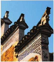 曹氏的宗族祠堂“九如堂”是这座村落的“灵魂”,居于正中。一间间宅院、一幢幢房屋向两侧铺展开来,依着山的缓坡逐级而建。又以天井为中心布置住房,布局多为合院式,每个院落都设正堂,而后面的院落要比前院高出些许,寓意着“步步高升”。九重门连通两旁的99间横屋,家家户户紧密相连,整个家族浑然一体。室内的牌匾、屏风、窗楣、梁柱上,砖雕、木雕、石雕的雕镂技艺精湛,风格独特,栩栩如生,令人叹为观止。