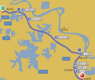 武汉—武鄂高速—外环高速—宜黄高速—黄石市—水南湾