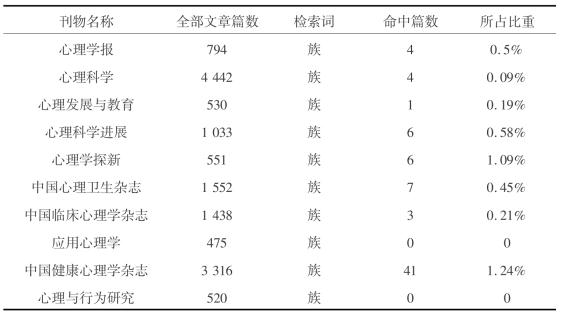 表一 2006—2011年国内心理学期刊关于少数民族心理研究的文章