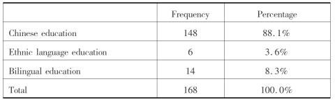 Table 2:Have you ever accepted the education taught in ethnic language or bilingual language?