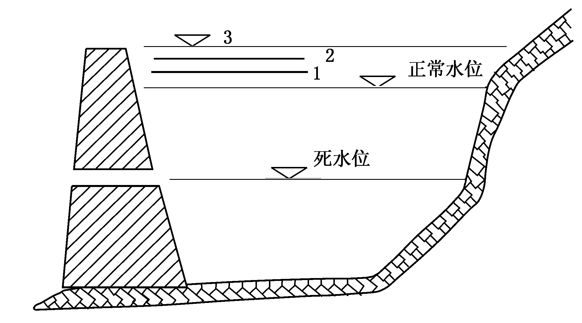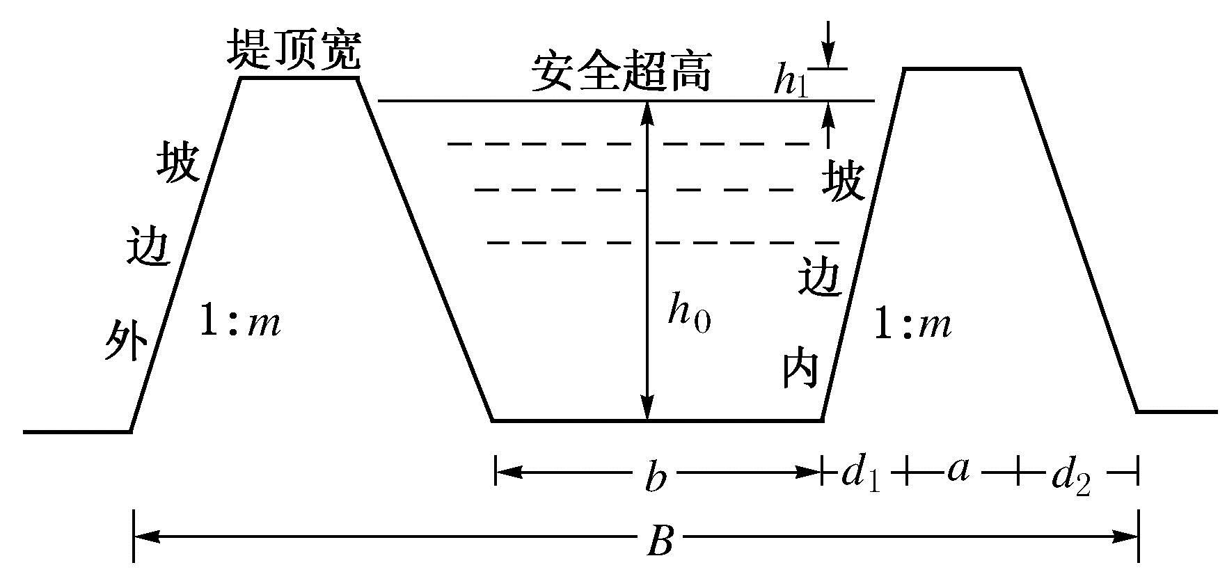 ④ 土坝高度,略高于水库历年最高水位;