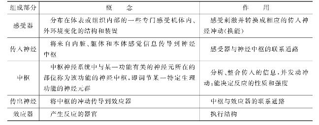 表1-1 反射弧组成和作用