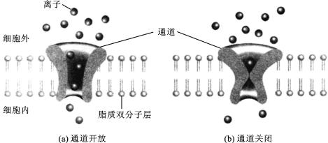 通道介导的易化扩散具有以下特点。①转运速度快:当通道开放的时候,被转运物质能大量、连续地跨膜转运。离子的跨膜转运受电-化学梯度影响,电-化学梯度越大,驱动力就越大。②具有选择性:每种通道通常只对一种或几种离子有较高的通透性,而对其他离子则不易或不能通过。例如,K+通道对K+通透性高,而对Na+通透性极小。③门控性:大多数通道具有一个闸门,当受到某些因素刺激时可引起闸门的开放或者关闭,从而决定物质跨膜转运是否发生或者发生的速度。根据引起闸门开关的因素,即门控特性的不同,通道可分为化学门控通道(由细胞膜两侧某种化学信号引起闸门开关)、电压门控通道(由细胞膜两侧电位差的变化引起闸门开关)和机械门控通道(由机械因素引起闸门开关)等类型。