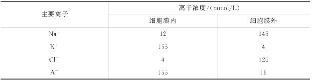表2-1 哺乳动物骨骼肌细胞膜内、外离子的浓度