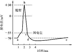 注:ab表示锋电位上升支;bc表示锋电位下降支;cd表示负后电位;de表示正后电位。