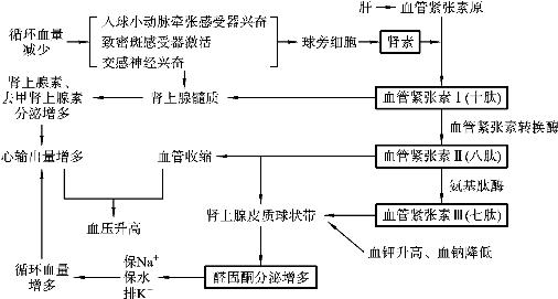 图8-16 肾素-血管紧张素-醛固酮系统功能示意图