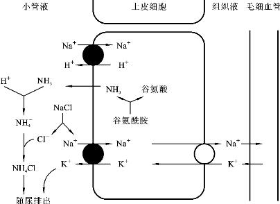 主动重吸收可分为原发性主动重吸收和继发性主动重吸收,继发性主动重吸收又分为同向转运和逆向转运。同向转运指两种耦联转运物质向细胞膜相同方向进行转运,如葡萄糖与Na+耦联的重吸收。逆向转运是指两种耦联转运物质向相反方向通过细胞膜的转运,如肾小管细胞分泌H+与重吸收Na+是相耦联的。