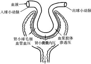 与组织液的生成和回流类似,肾小球滤过的动力也是有效滤过压,该压力主要取决于滤过的动力和阻力之差。在血流量和通透性稳定的情况下,其大小决定了滤过生成超滤液的量。由于超滤液中蛋白质极少,其胶体渗透压可忽略不计,故