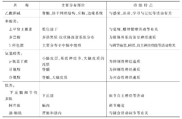 表10-3 主要中枢神经递质在中枢神经系统内的主要分布部位和功能特点