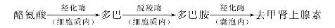 去甲肾上腺素以酪氨酸为原料合成,其步骤如下。