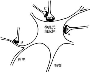 注:A表示轴-体突触;B表示轴-树突触;C表示轴-轴突触。