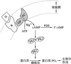 注:H表示激素;R表示受体;GP表示G蛋白;AC表示腺苷酸环化酶;PDE表示磷酸二酯酶。