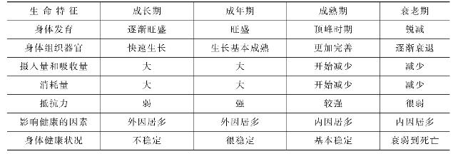 人的寿命周期就是人寿命的时间维度,是指从人生殖细胞的结合开始到生命终止的过程。人的寿命要经历成长期、成年期、成熟期、衰老期至死亡的整个生命过程。人的寿命周期各时期的生命特征见表13-1。