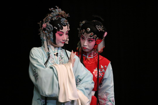 杜丽娘、春香【皂罗袍】原来姹紫嫣红开遍,似这般都付与断井颓垣。良辰美景奈何天,便赏心乐事谁家院?朝飞暮卷,云霞翠轩,雨丝风片,烟波画船。锦屏人忒看的这韶光贱!