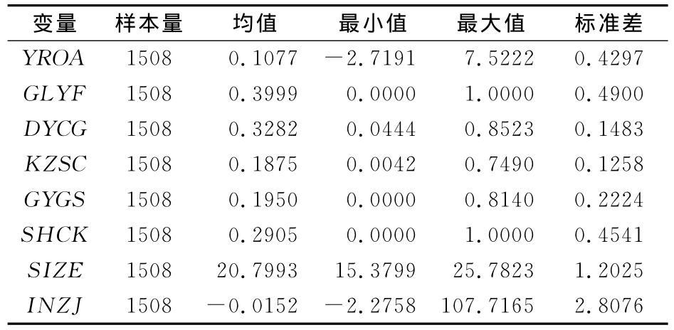 表2是对上述模型中被解释变量(资产净利率年度变化)、解释变量及部分控制变量进行描述性统计的结果。