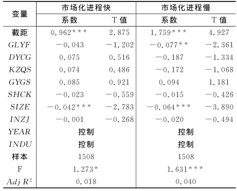 表4 按照市场化进程快慢的分样本OLS回归结果