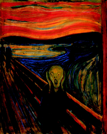 《呐喊》又名《呼号》,在这幅画中人对孤独与死亡的恐惧感被淋漓尽致地刻画出来。恐惧感始终魔影般不离画家左右,因此他在此画中把那种常常纠缠着他的恐惧赋予概括、更含糊乃至更恐怖的表现。凄惨的尖叫在画家的描绘下变成了可见的振动,像声波一样扩散。画中那婉转随意的线条,与画面内容相吻合,十分具有表现力。