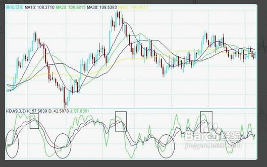K线在D线已经抬头向上才与D线相交,比D线还在下降时与之相交要可靠得多,换句话说:右侧相交比左侧相交好。当汇价经过前期一段很长时间的上升行情后,汇价涨幅已经很大的情况下,一旦J线和K线在高位(80以上)几乎同时向下突破D线时,表明股市即将由强势转为弱势,汇价将大跌,这时应卖出大部分外汇而不能买外汇,这就是KDJ指标的“死亡交叉”的一种形式。