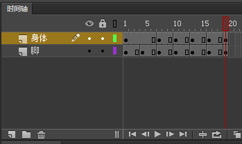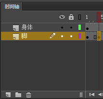 把鼠标放置到“脚”图层的时间轴上的第四帧,单击右键(或按F6),插入关键帧。使用“选择工具”,当鼠标下方出现弧线之后,拖动改变左脚的形状,效果如下图所示。