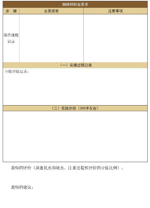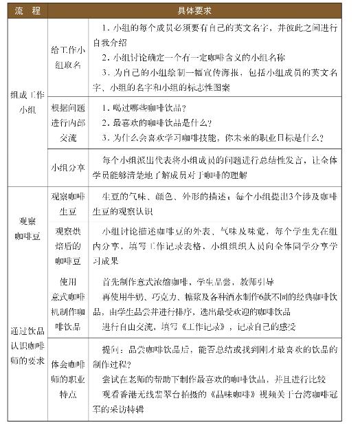 通过在咖啡厅的体验活动,品尝教师制作的咖啡,并通过观看视频资料总结出咖啡师的主要素质。
