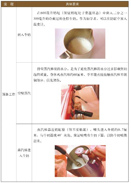 3.本任务中用到的关键名词:全脂牛奶、奶缸、蒸汽棒、牛奶旋转、吱吱声、发泡