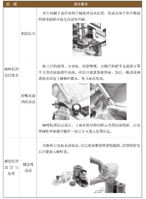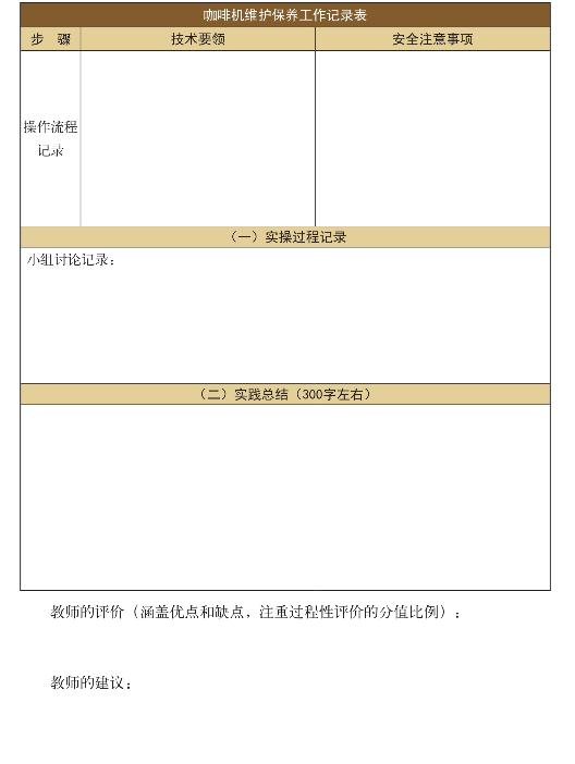 本任务主要是为了保证咖啡机有良好的工作状态,能够制作出高质量的咖啡饮品。因此,日常的维护保养工作需要咖啡师养成非常良好的习惯,做到每次工作结束后都能进行咖啡机的保养工作,并且能够按照操作的规程来进行操作。在实际的工作中,要使用维护保养手册来登记咖啡机的清洁保养时间及实施的程度。每一次的操作都要及时提醒咖啡师不要造成食品卫生的安全问题。