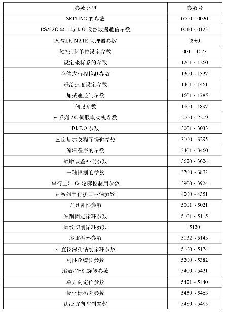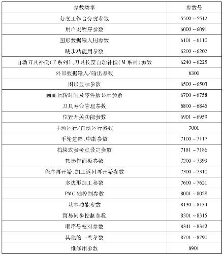数控系统的参数是数控系统用来匹配机床及数控功能的一系列数据。在FANUC 0i系统中参数可分为系统参数、PMC参数。系统参数又按照一定功能进行分类,共有40多类。PMC参数是数控机床的PMC程序中使用的数据,如:计时器,计数器,保持型继电器的数据。这两类参数是数控机床正常启动的前提条件。