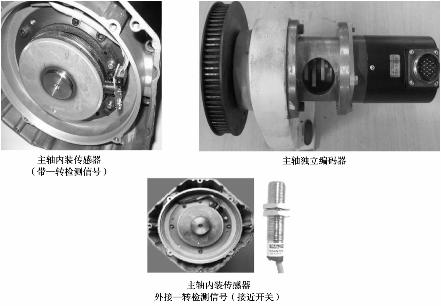 主轴信号检测装置:主轴信号检测装置由于实现主轴速度和位置反馈,以及主轴功能(如主轴定向和刚性攻螺纹)的信号检测,可以是主轴外置编码器、主轴电动机内装传感器及外接一转信号配合电动机内装传感器检测装置。