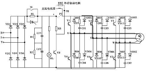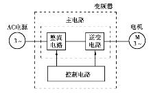 交—直—交型变频器的构成如图6. 4所示,可分为主电路和控制电路两大部分。主电路包括整流电路和逆变电路两部分,整流电路是把交流电转换为直流电;逆变电路是把直流电再逆变成交流电。控制电路主要用来完成对主电路的控制。