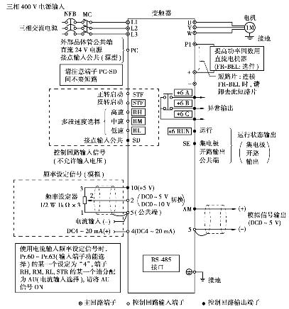 三菱的FR-S500变频器是具有免测速机矢量控制的通用变频器,它可计算出所需的电流和频率的变化量以维持所期望的电机转速,而不受负载条件变化的影响,并可通过数字操作面板或通过远程操作器方式。